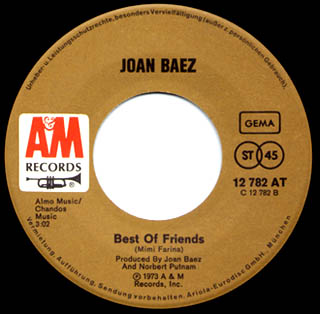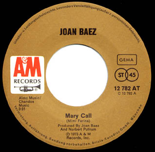 Joan Baez with Mimi Fariņa: "Mary Call"/"Best of Friends" A&M 12782 |