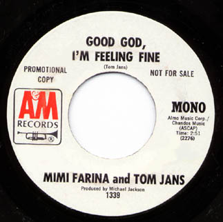 Mimi Fariņa and Tom Jans: "Good God, I'm Feeling Fine"/"Good God, I'm Feeling Fine" A&M 1339 |