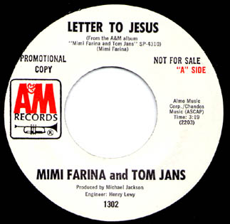 Mimi Fariņa and Tom Jans: "Letter to Jesus"/"Madman" A&M 1302 |
