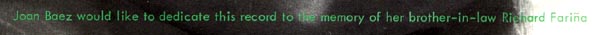 Two songs written by Mimi, performed by Joan Baez (with Mimi) for her album,