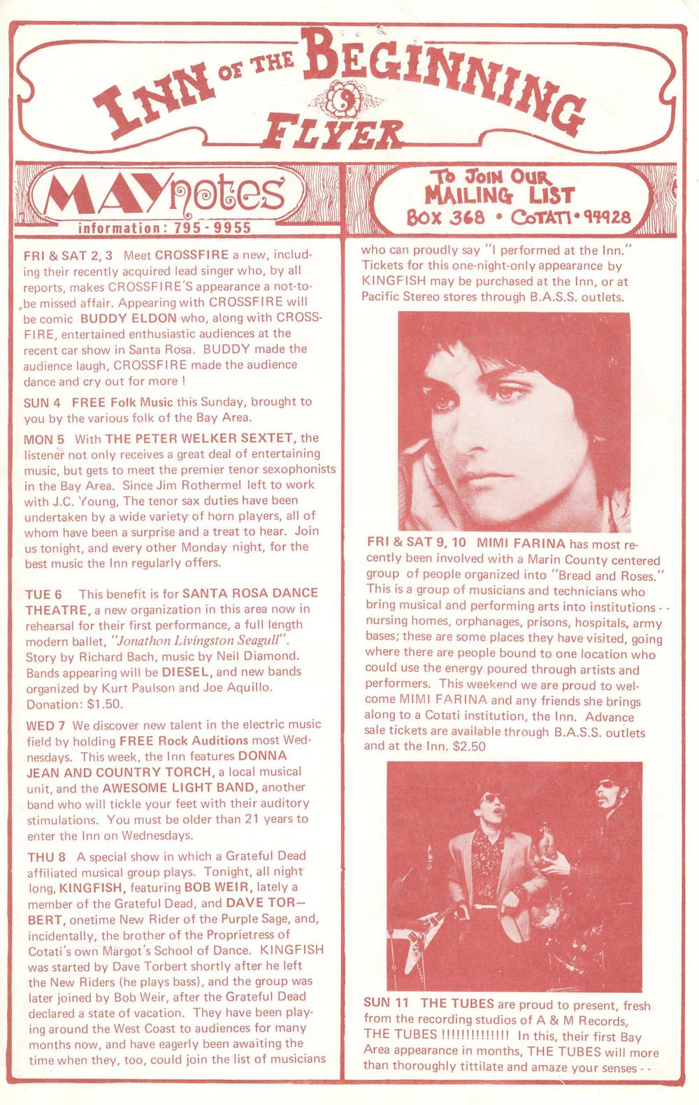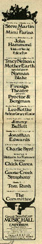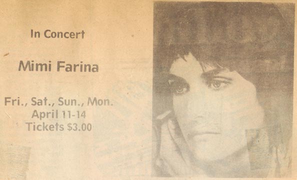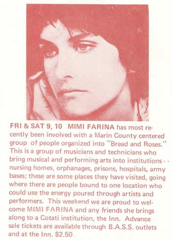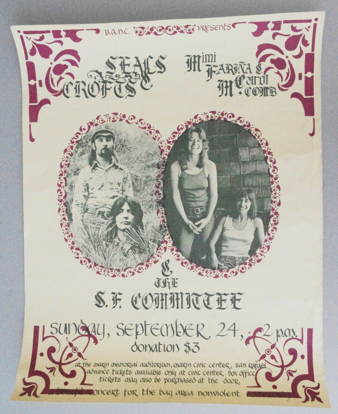 Also appearing: Seals & Crofts, and The San Francisco Committee (with whom Mimi performed in the 60s).