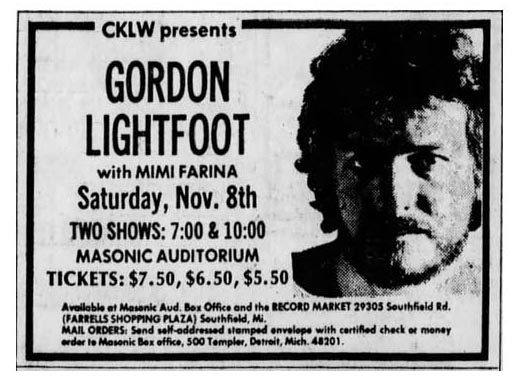 Opening for Gordon Lightfoot at the Masonic Auditorium in Detroit, MI,