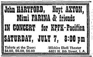 July 7, 1973, with John Hartford and Hoyt Axton;