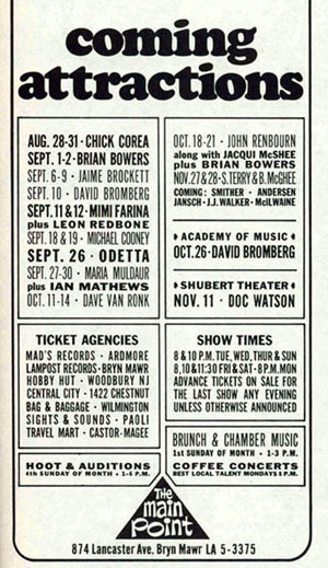 With Leon Redbone September 11-12, 1973, at the Main Point.