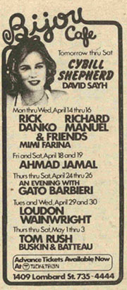 At the Bijou in Philadelphia, April 14-16, 1980.