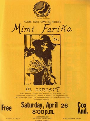 Note: Richard Farina Senior was in the audience that night, and Mimi sang three of