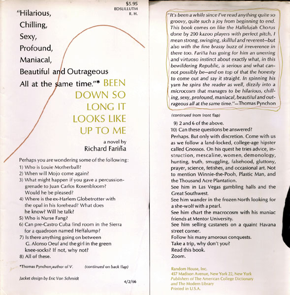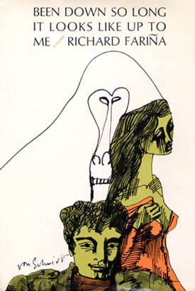 An early plan for the book, as conceived by the inventive Fariņa, was to create an illustrated novel wherein the drawings would reveal scenes that were not directly narrated in the text. It was to be a new genre that fused narrative and visual art (this is the project referred to on the back of the Dick Fariņa & Eric von Schmidt album). Eric submitted several sketches to Random House, but ultimately they rejected the plan for an illustrated novel because it would have been too expensive. Fariņa's frenetic rock-and-roll style of writing, they decided, was innovation enough for one novel. But they did recruit Eric for the cover design. It is not known if any of his original sketches still exist.