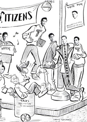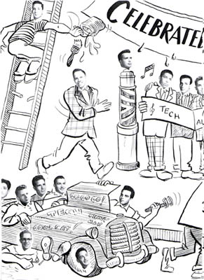 If you look closely, you will also find Fariña in this two-page cartoon spread from the yearbook: