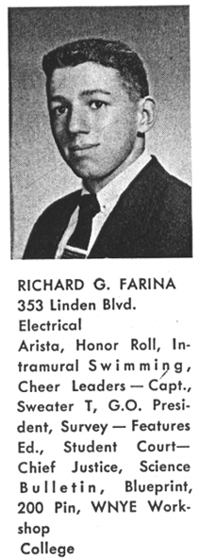 Richard Fariña excelled on several levels at Brooklyn Tech. He