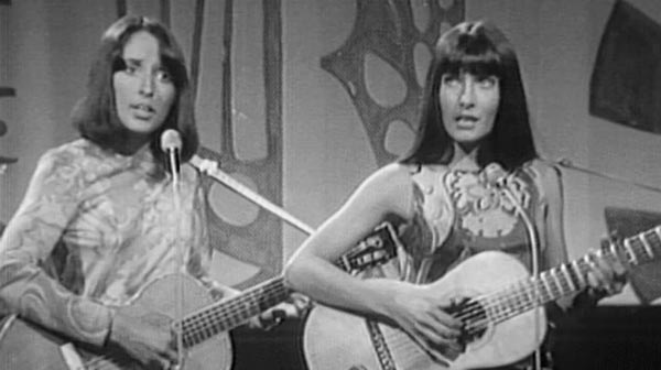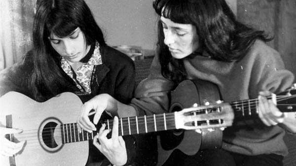 From the PBS series American Masters, which has produced wonderful documentaries of Bob Dylan, Joni Mitchell, and Woody Guthrie, comes this fascinating look at Joan Baez's impressive career in music and political activism. American Masters has always done a miraculous job of digging up archival footage that nobody ever knew existed, and for Joan Baez they have unearthed the family's home movies, with fleeting but fascinating shots of Pauline, Joan and Mimi as children, as well as some previously unreleased concert footage and still photography spanning half a century. Here are the best screen grabs of Mimi that I could get: