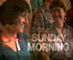 CBS News Sunday Morning November 26, 1989 Reporter John Blackstone profiled Bread & Roses for the CBS News Sunday Morning program broadcast on Thanksgiving weekend. The segment lasts about 12 minutes and includes four or five minutes of comments from Mimi. There are also a couple minutes of John Hammond playing "Mother-in-Law Blues" and talking about Bread and Roses, and other volunteer performers.