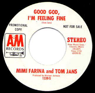 Mimi Fariņa and Tom Jans: "Good God, I'm Feeling Fine"/"Good God, I'm Feeling Fine" A&M 1339 |