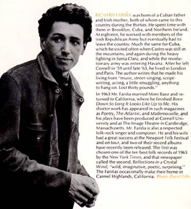 An early plan for the book, as conceived by the inventive Fariņa, was to create an illustrated novel wherein the drawings would reveal scenes that were not directly narrated in the text. It was to be a new genre that fused narrative and visual art (this is the project referred to on the back of the Dick Fariņa & Eric von Schmidt album). Eric submitted several sketches to Random House, but ultimately they rejected the plan for an illustrated novel because it would have been too expensive. Fariņa's frenetic rock-and-roll style of writing, they decided, was innovation enough for one novel. But they did recruit Eric for the cover design. It is not known if any of his original sketches still exist.