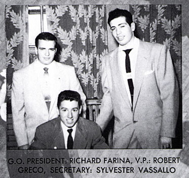 From the yearbook: "The very heartbeat of Techtown is the General Organization. Formed as a student council, the G.O. is made up of delegates chosen from the class presidents of the respective grades. The council governs and controls the extracurricular life of the Techtowner. President Dick Farina, and Vice-President Bob Greco direct the operation of the G.O. with the help of the Honorary President, Mr. Longo. Secretary Sylvester Vassalo and Social Coordinator Larry Tetenbaum implement the work of the Council."