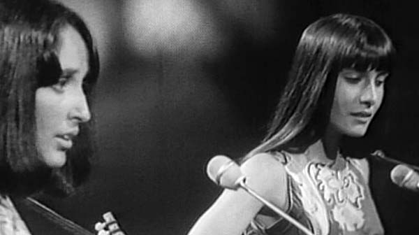 From the PBS series American Masters, which has produced wonderful documentaries of Bob Dylan, Joni Mitchell, and Woody Guthrie, comes this fascinating look at Joan Baez's impressive career in music and political activism. American Masters has always done a miraculous job of digging up archival footage that nobody ever knew existed, and for Joan Baez they have unearthed the family's home movies, with fleeting but fascinating shots of Pauline, Joan and Mimi as children, as well as some previously unreleased concert footage and still photography spanning half a century. Here are the best screen grabs of Mimi that I could get: