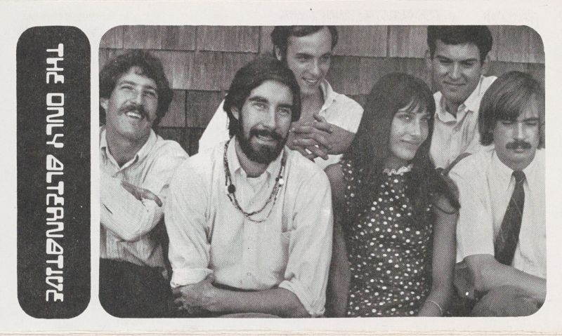 Left to right: Pat Hunt, Tor Olson, Tom Rice (in back), Mimi, Michael Aragon, John Bingham. If you know anything more about The Only Alternative and his Other Possibilities, write to me at farinaweb@yahoo.com.